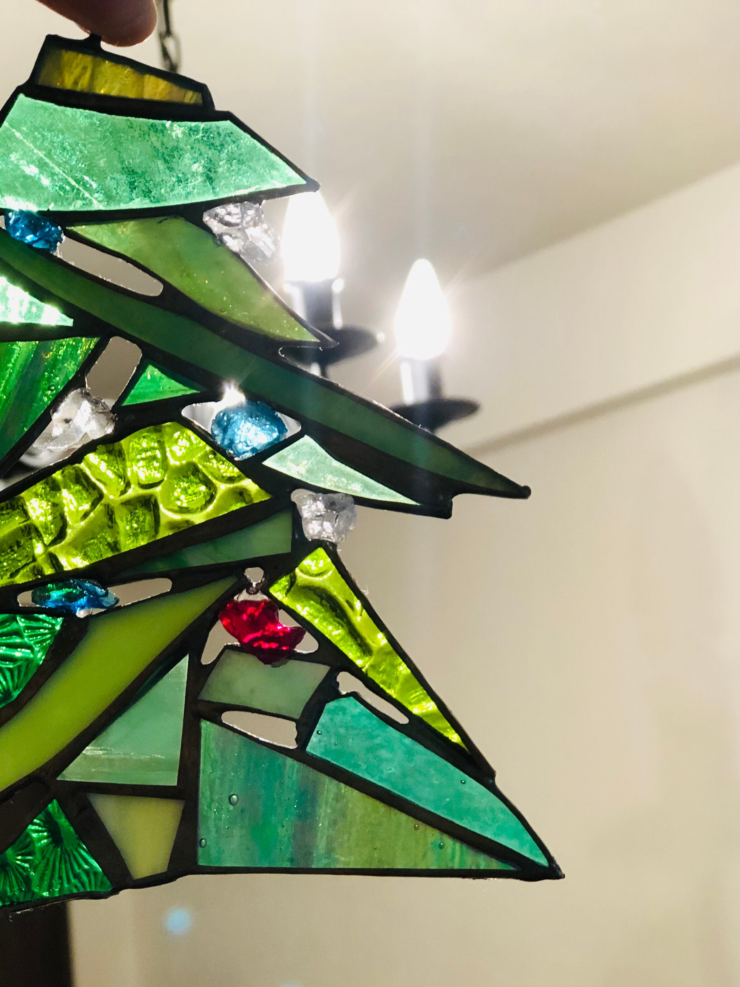 ステンドグラスでつくった、クリスマスツリーです。